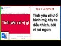 Top Comment P14: Tình yêu có vị gì - Chị Google Dịch -Xin chào tất cả các bạn đã đến với Chị Google Dịch hôm nay mình sẽ tổng hợp và chia sẻ với các bạn các Top Comment hài hước, và bá đạo được mình tổng hợp trên mạng xã hội thời gian gần đây. -Xem video đừng quên để lại các nhận xét, hoặc những câu nói hay để nhanh chóng được lên top nhé. -Chúc các bạn xem video vui vẻ.